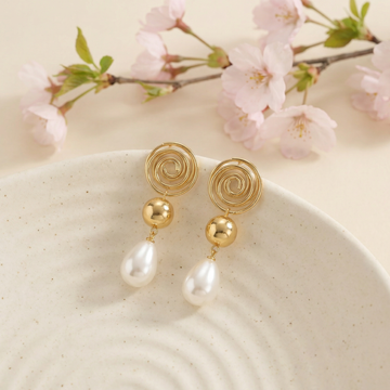 A statement in refined elegance, these Jewelz Spiral Pearl Earrings feature a delicate swirl design...