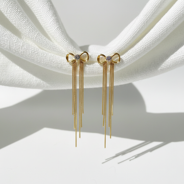 Add a playful yet chic vibe with these bow tassel earrings. Featuring delicate chains and...
