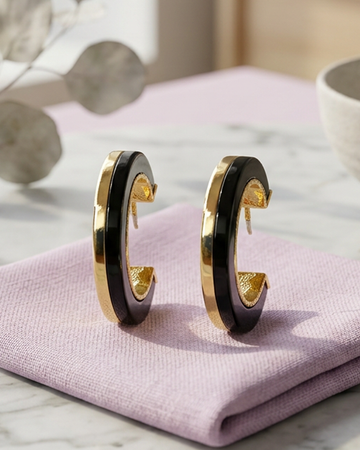 Make a bold yet elegant statement with these black and gold dual-tone hoop earrings. Featuring...