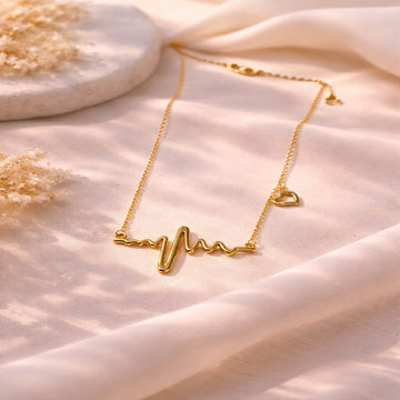 Add a touch of modern elegance to your look with this beautifully crafted gold-plated heartbeat...
