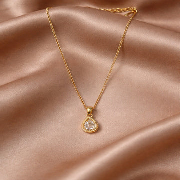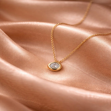 Elevate your everyday style with this elegant gold-plated round solitaire pendant necklace. Designed with a...