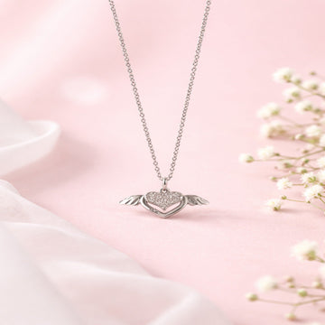 This stunning silver-toned angel wing pendant features high-clarity crystals for maximum sparkle. A luxury-inspired piece...