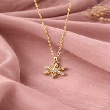 Designed with a beautifully detailed snowflake pattern and a shimmering center stone, this piece reflects...