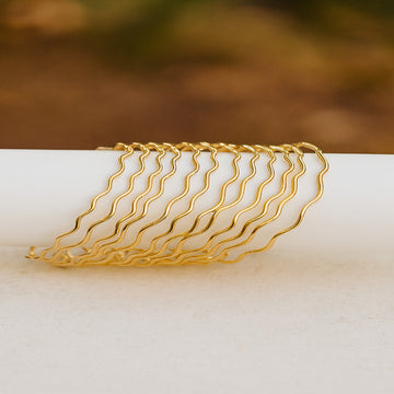 Elegant wavy bangles in golden tone. Lightweight and stylish, perfect to pair with traditional or...