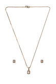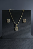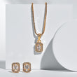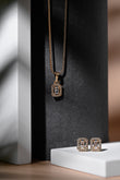 AD Golden Baguette-Cut Pendant & Stud Earrings Set – Classic Glam Look