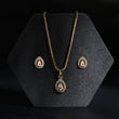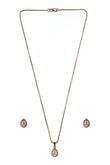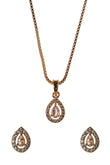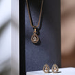 Add a touch of radiance to your look with this gold-plated teardrop pendant and earring set. Embellished with shimmering CZ stones, it blends traditional charm with a modern twist—perfect for festive wear, wedding invites, or as a sparkling gift for someone special.