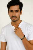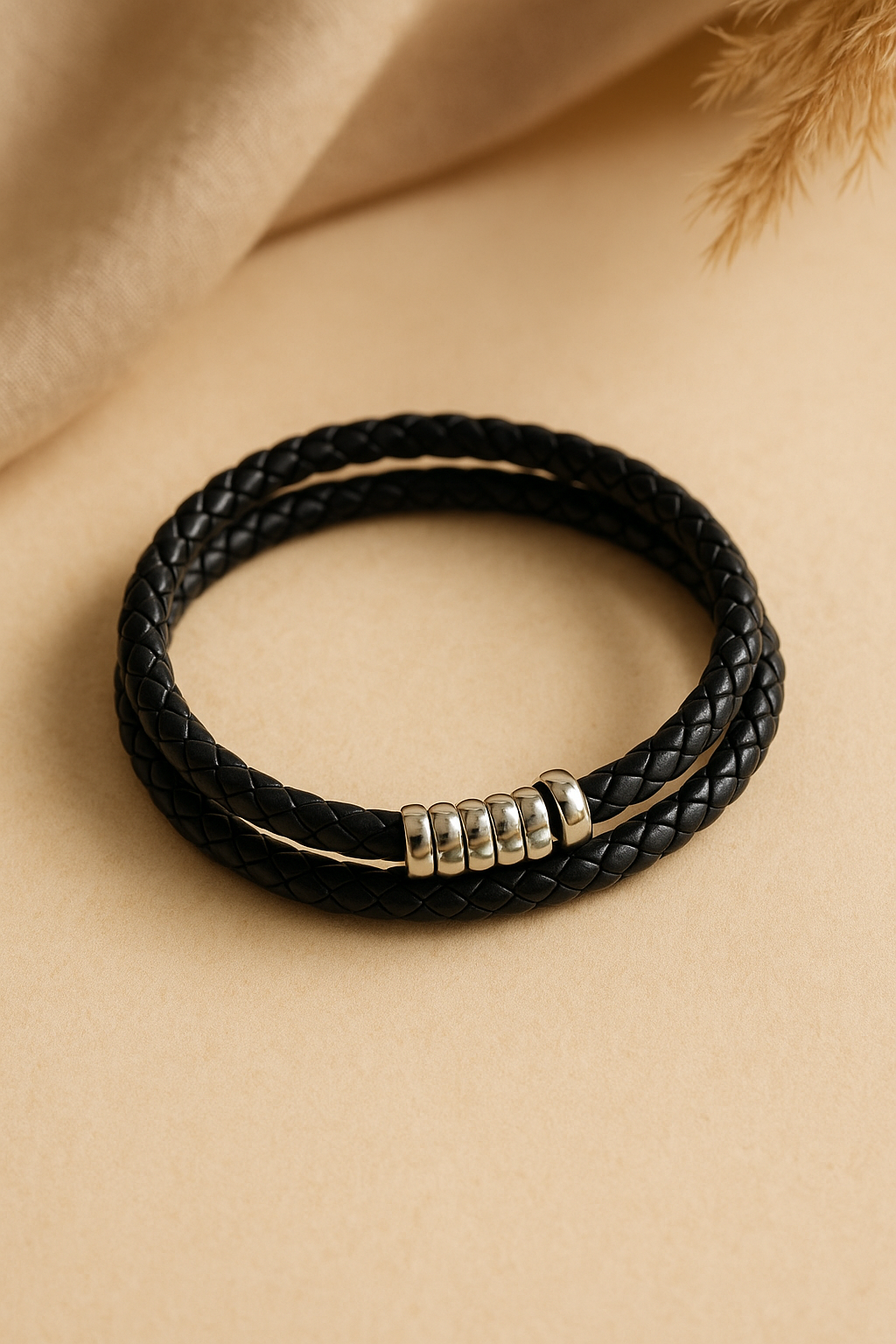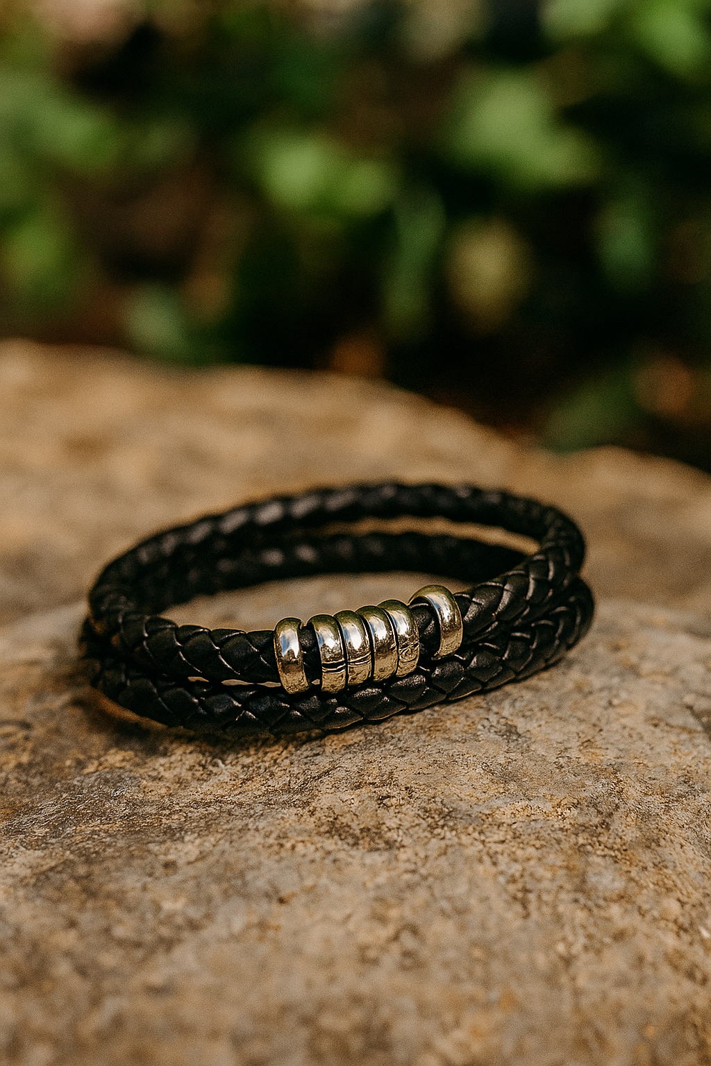 Elevate your style with this Black Braided Leather Bracelet adorned with sleek silver beads. Its adjustable fit and durable design make it ideal for daily wear or special occasions. A perfect blend of boldness and class—ideal for men who love timeless, effortless fashion.