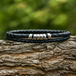 Black Braided Leather Bracelet with Silver Beads