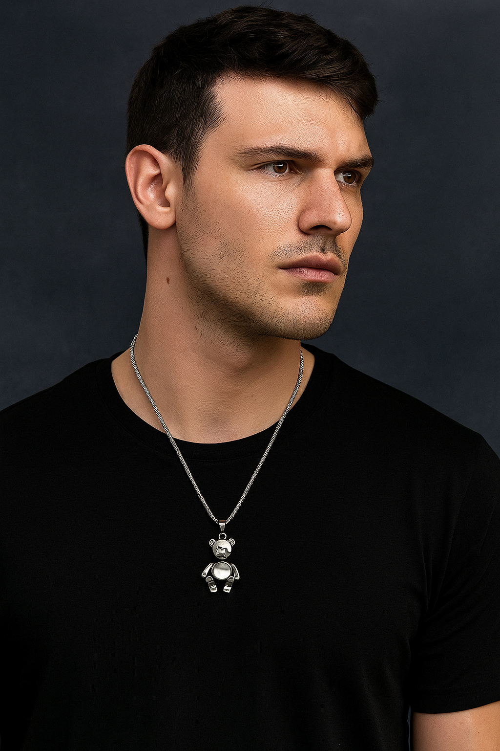 Stylish black chain necklace featuring a sleek vertical bar pendant with engraved design. A modern accessory perfect for casual wear, street style, parties, or gifting.