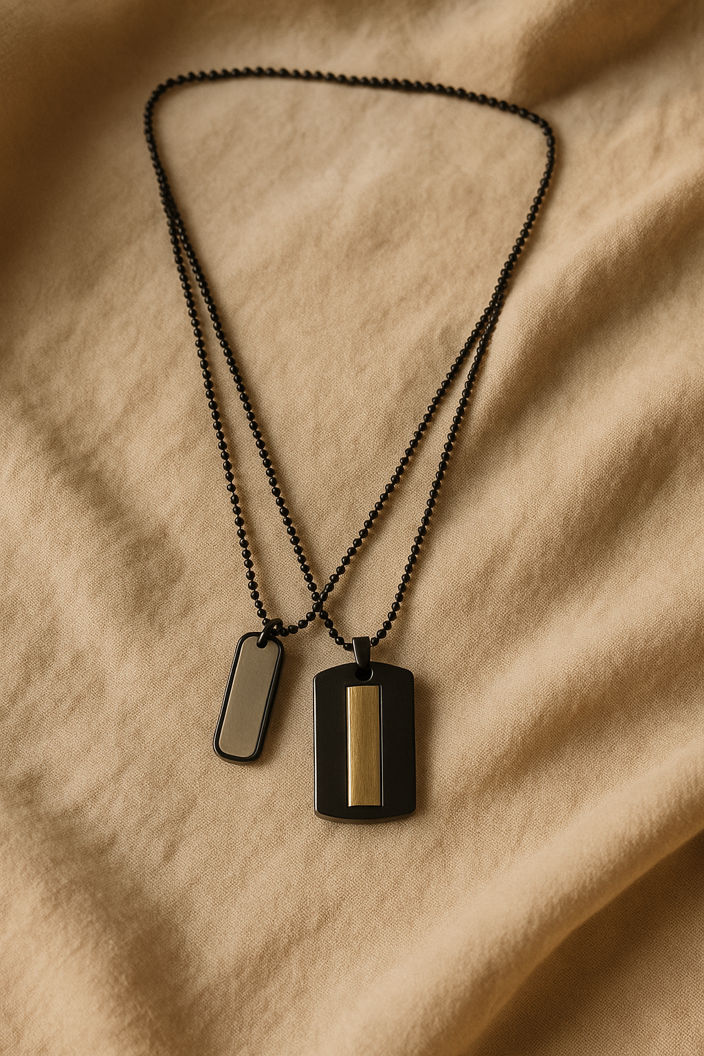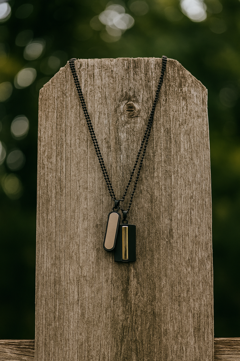 Black Chain Necklace with Dual Pendants