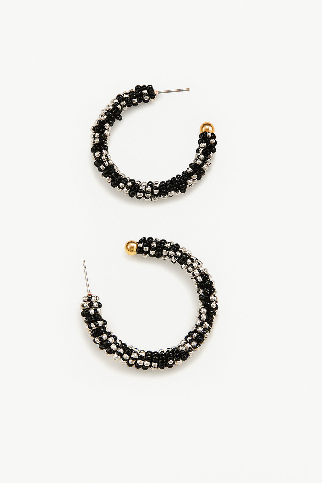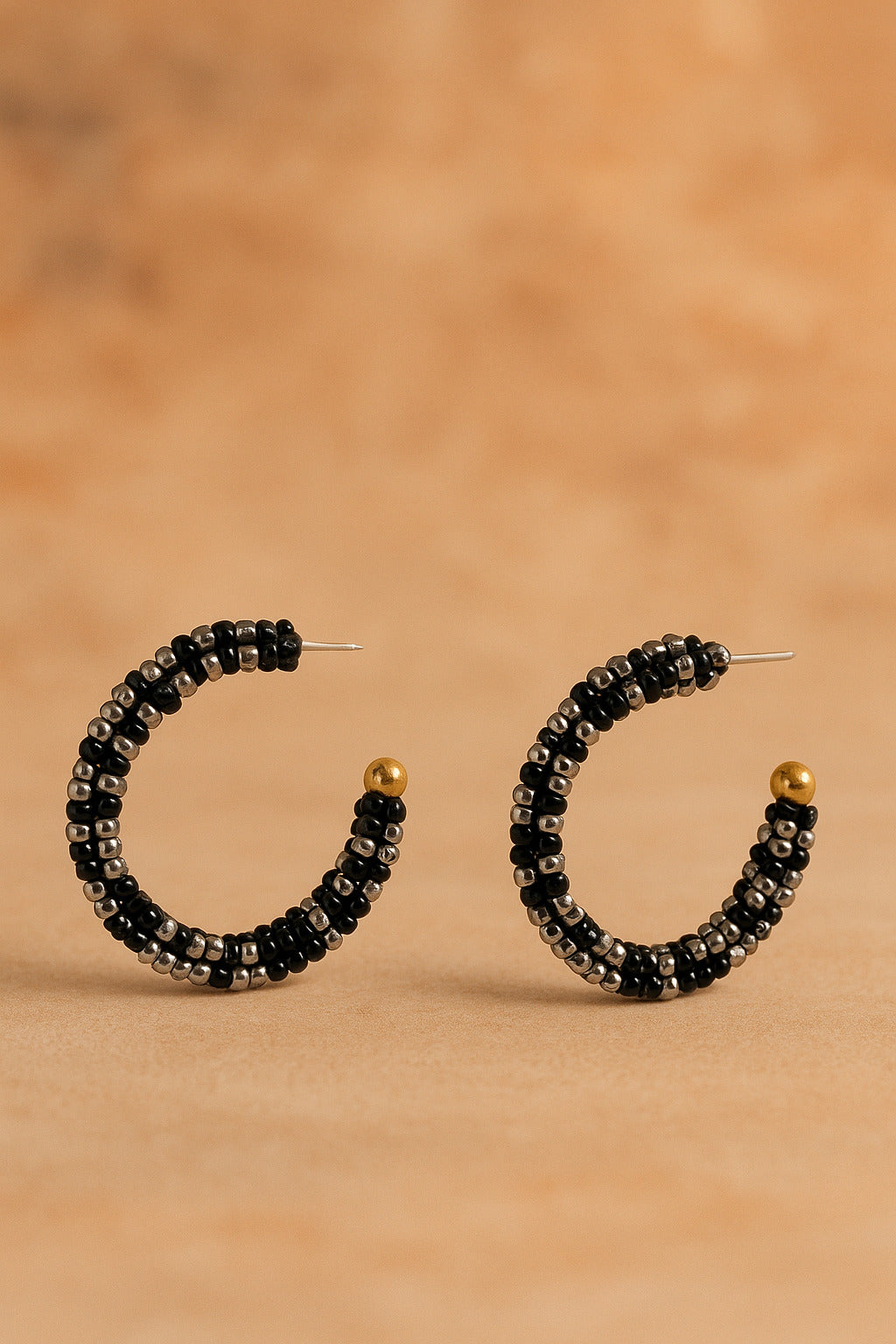 Elegant hoop earrings featuring black and silver beads with gold stud accents. Lightweight and versatile, perfect for parties, festive wear, or adding a touch of glam to casual outfits.