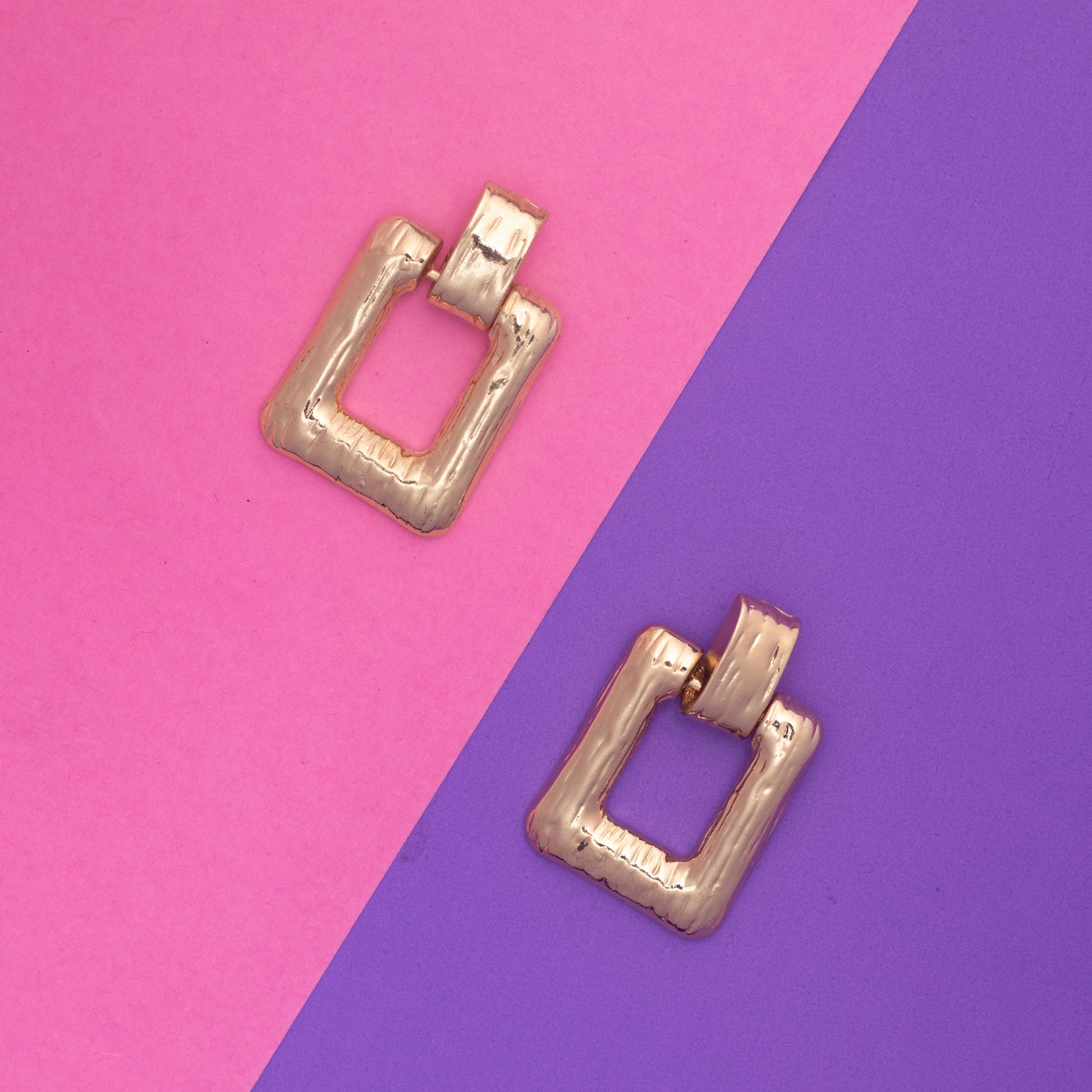Step up your style game with these bold square earrings in a hammered gold finish. Their chunky, textured design adds a touch of retro glam โ perfect for parties, festive wear, or when you want to stand out in style.