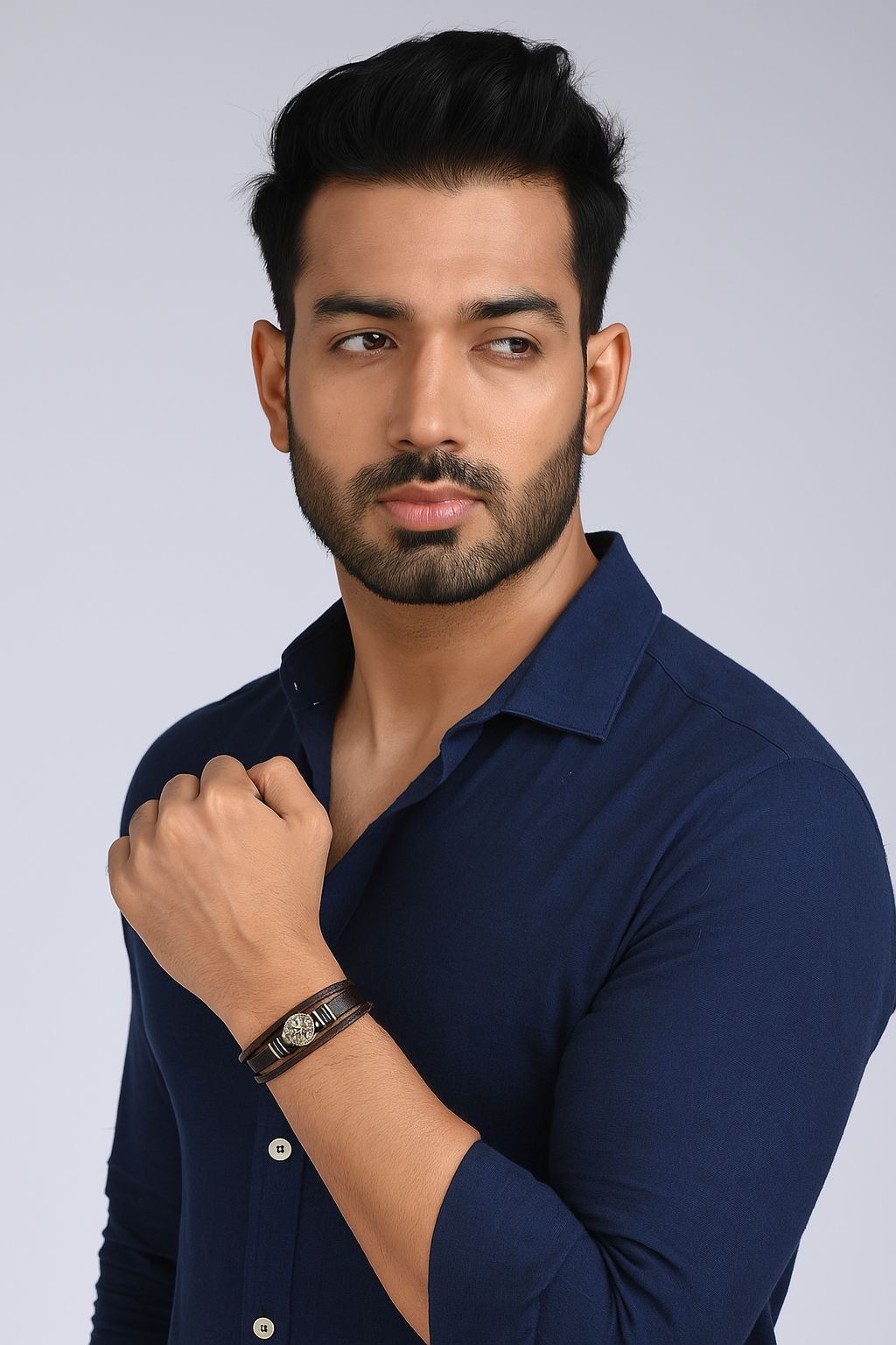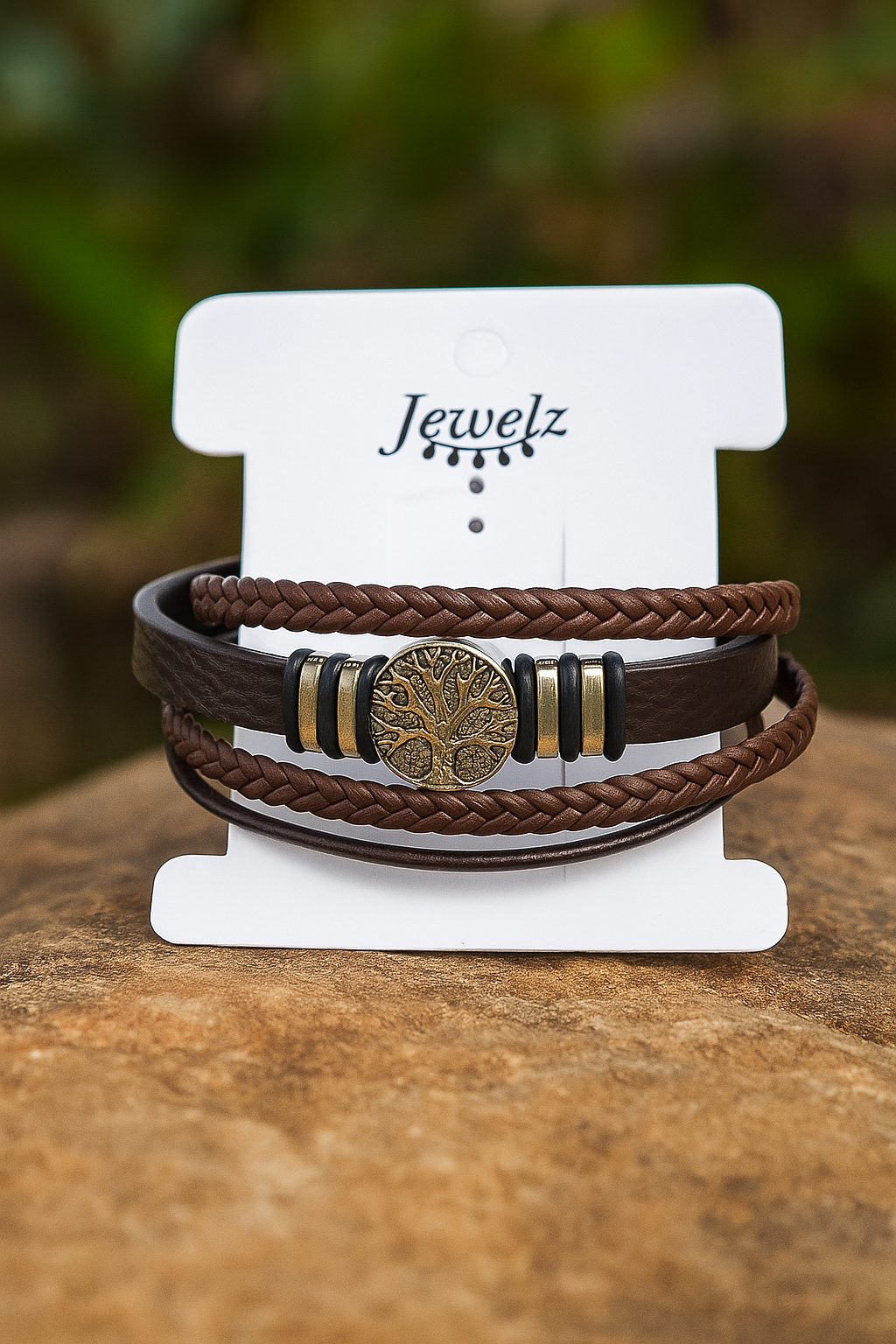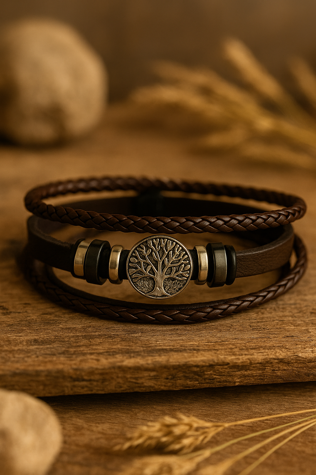 Add timeless charm to your style with this Brown Leather Bracelet featuring the iconic Tree of Life charm. Made from durable faux leather with adjustable closure, it blends elegance and strength—perfect for everyday wear, parties, or gifting. A must-have for modern men.
