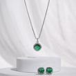 Emerald Green Cushion-Cut Pendant & Earring Set – Silver Finish