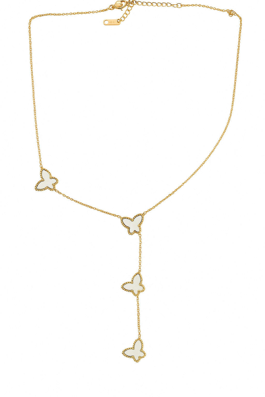 Elegant layered necklace featuring four delicate gold butterfly outlines. Made from stainless steel—tarnish-free, skin-safe & lightweight. A dreamy pick for casual or festive charm.