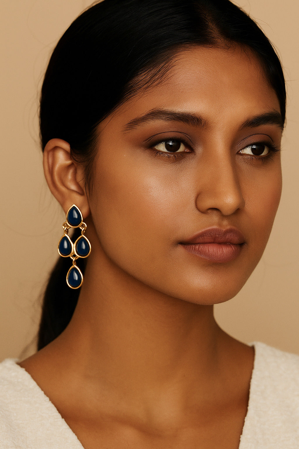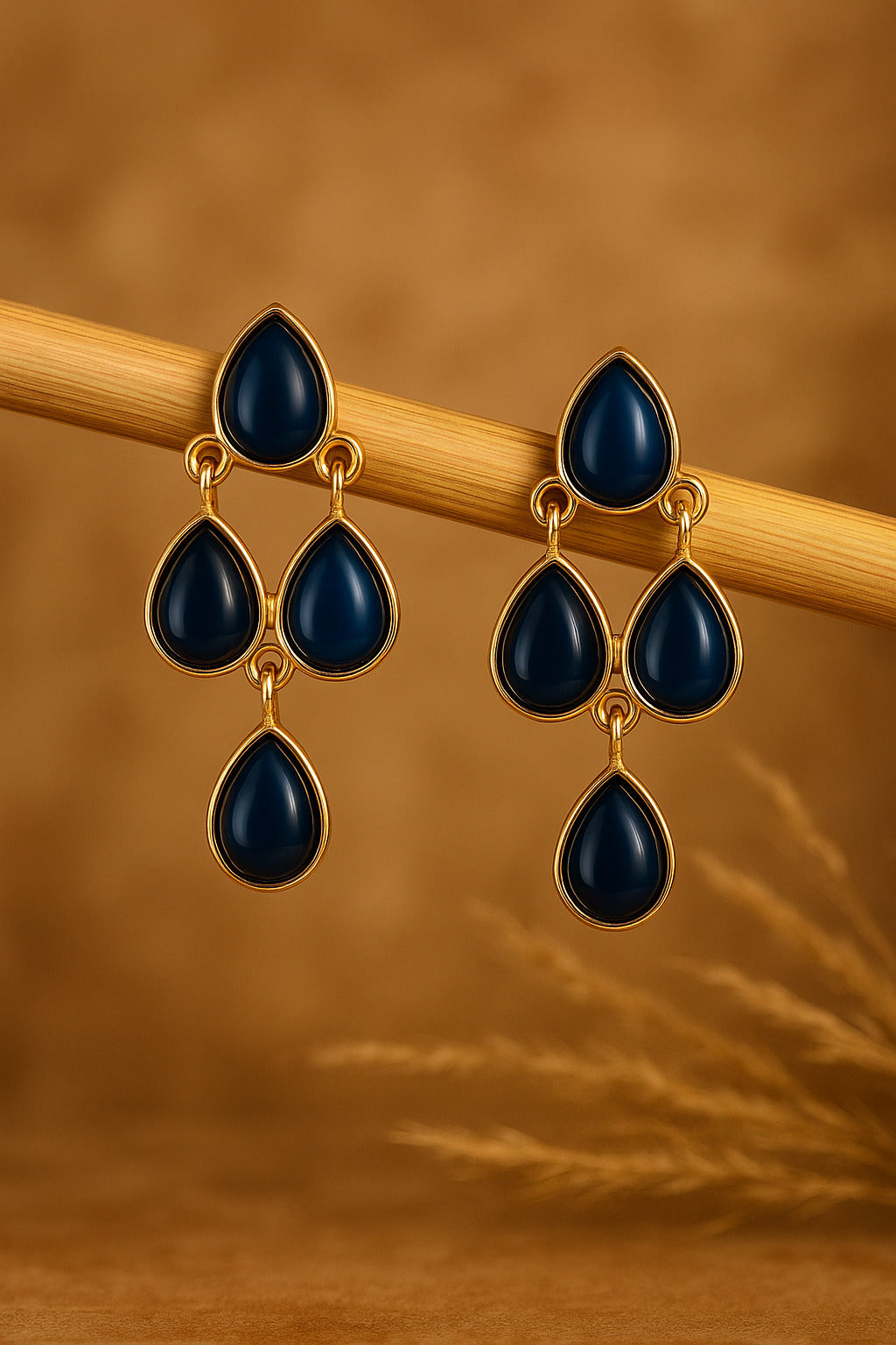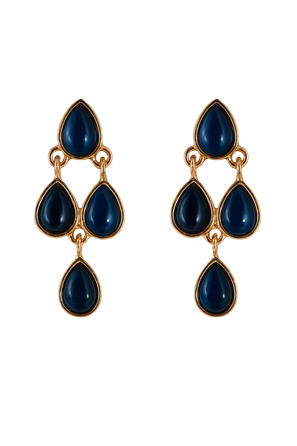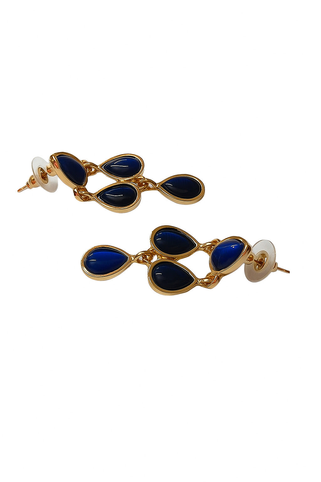 Stylish gold-plated earrings with elegant blue teardrop stones. Lightweight and versatile, perfect for adding a touch of sophistication to both casual and festive outfits.