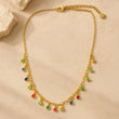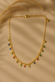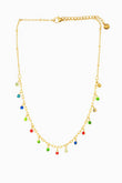 Delicate gold-plated necklace adorned with vibrant multicolor crystal charms. Lightweight and cheerful, perfect for adding a playful sparkle to casual or festive outfits.