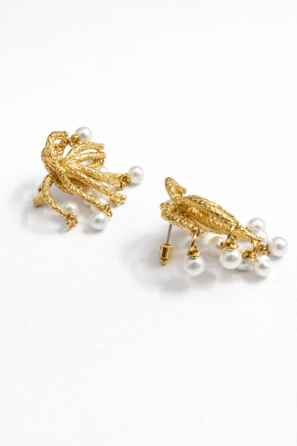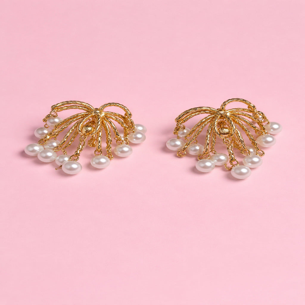 Stylish gold earrings featuring delicate strands with pearl accents that create a soft cascading effect. Perfect for adding elegance to traditional and modern outfits.