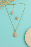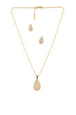 Elegant gold-tone jewelry set featuring a crystal-studded teardrop pendant with matching stud earrings. Lightweight, classy, and perfect for festive wear..