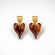 Gold-Toned Brown Heart Drop Earrings