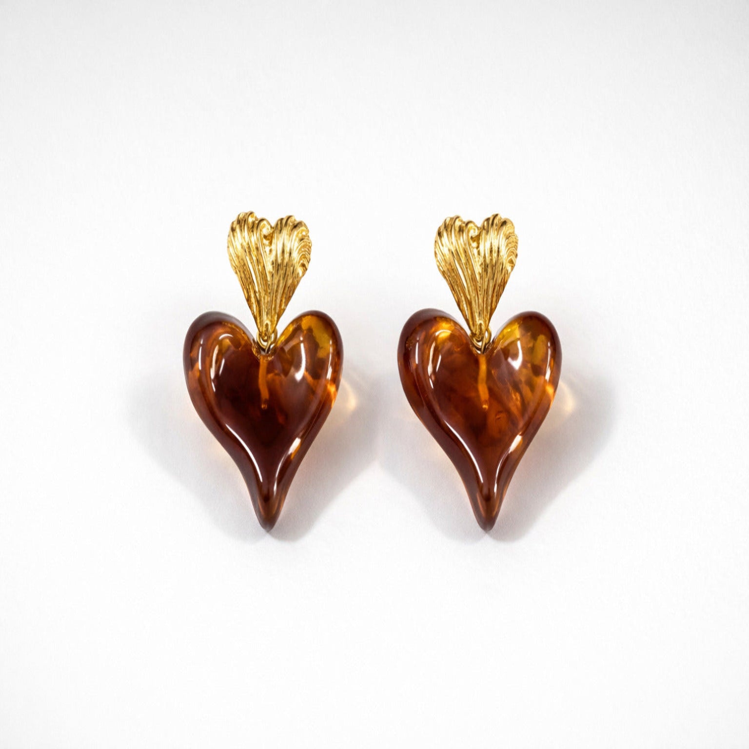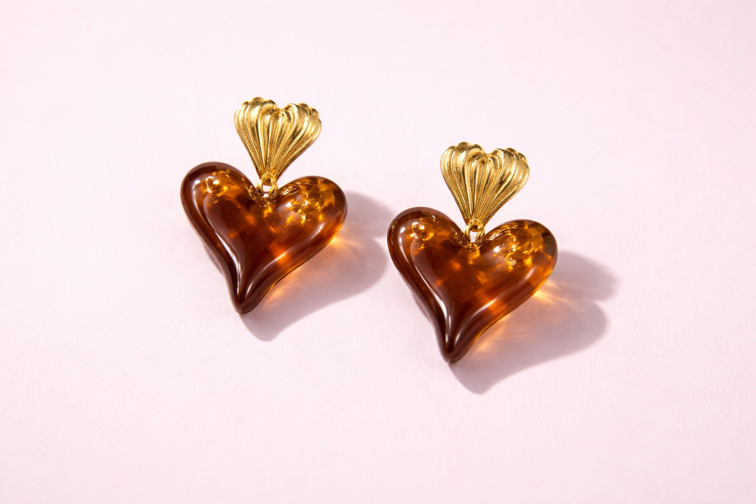 Stylish gold-toned earrings featuring glossy brown heart drops for a trendy statement look. Lightweight and perfect for parties, casual outings, and modern western or fusion fashion styling.