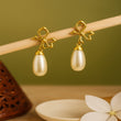 Designer Gold-Plated Bow Pearl Earrings