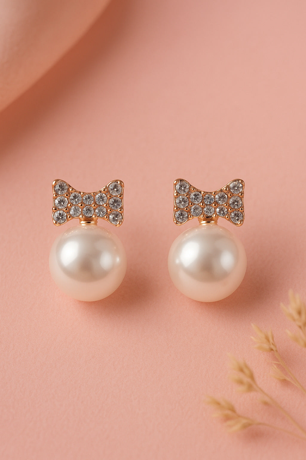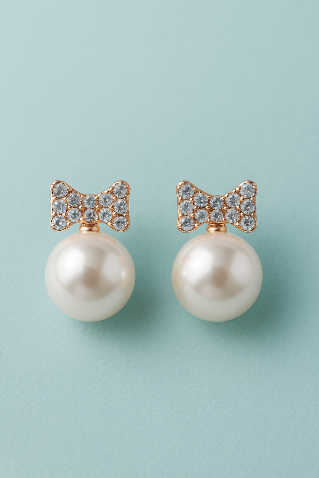 Charming pearl studs topped with sparkling bow accents. Perfect for festive wear, parties, or adding elegance to everyday looks.