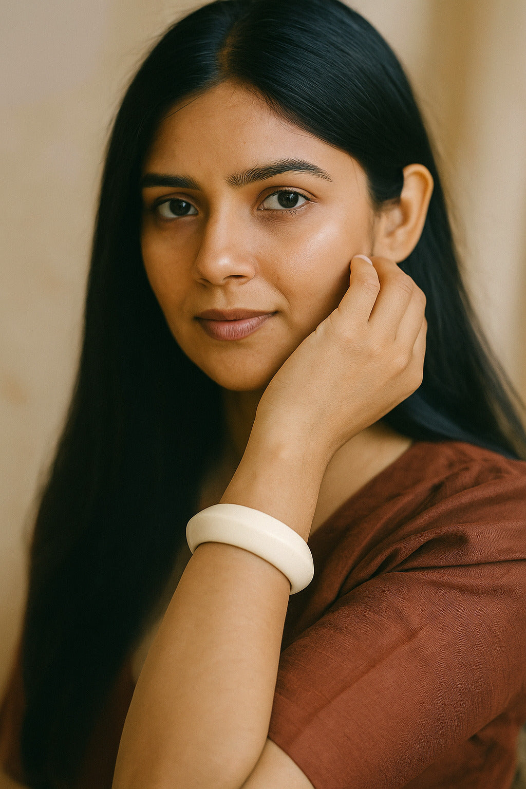 Elegant cream bangle with a smooth glossy finish. Perfect to pair with ethnic or western outfits for a chic, timeless look.