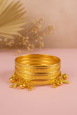 Beautiful gold bangles with intricate engravings and dangling charms. Perfect for festive and ethnic wear with an elegant touch..
