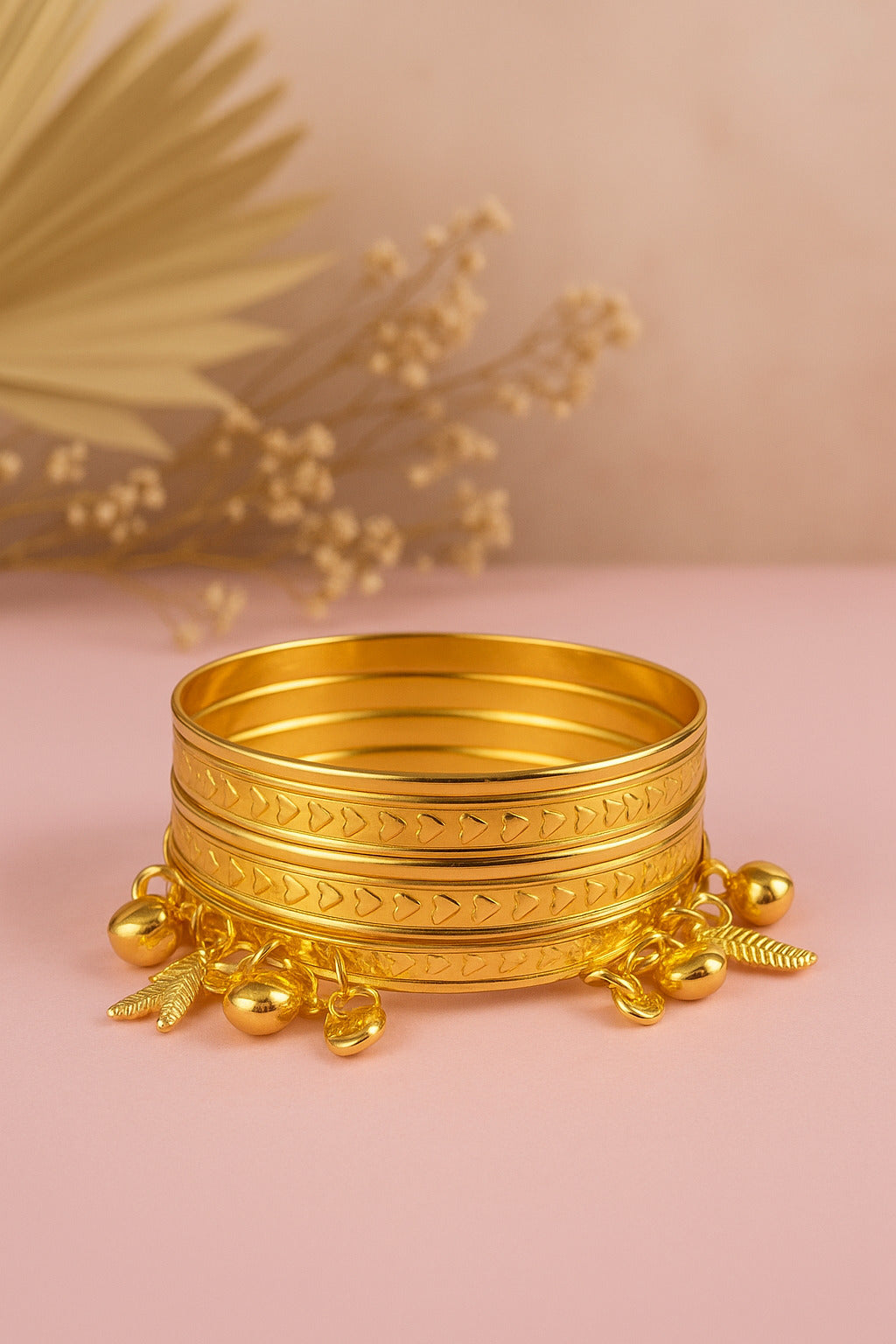 Gold Engraved Bangles with Hanging Charms