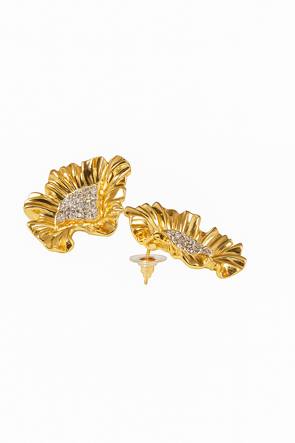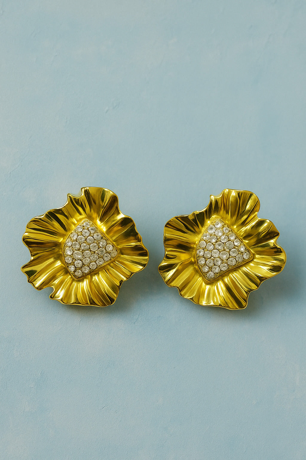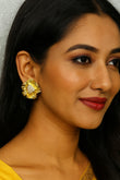 Bold gold floral earrings with shimmering stones. Lightweight, elegant & perfect for weddings, parties, and festive glamour.