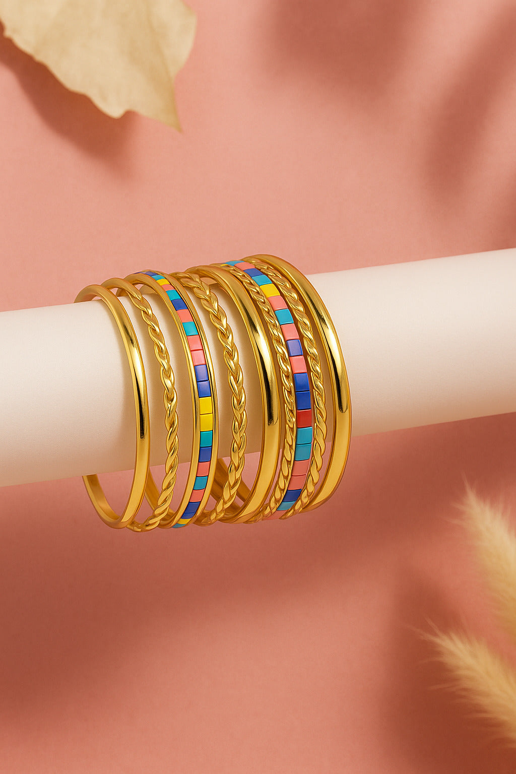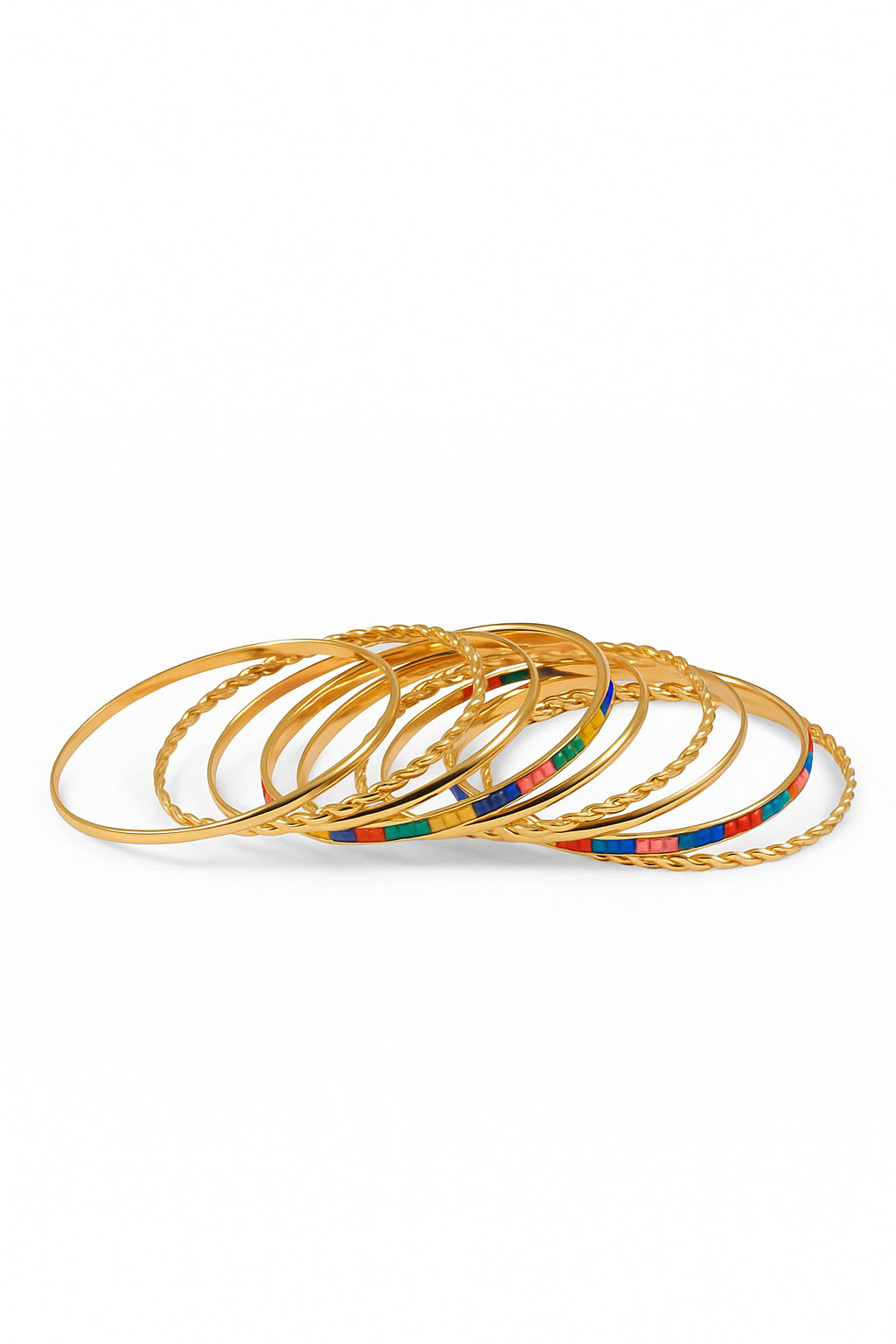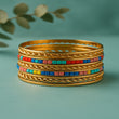 Elegant gold bangles with colorful enamel design. Perfect for festive and casual wear, adding a pop of color to your look.