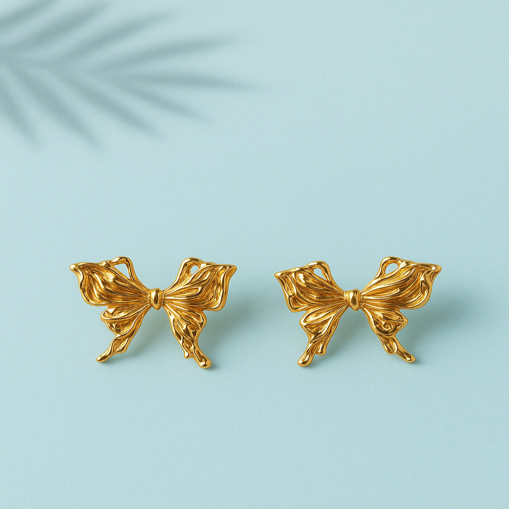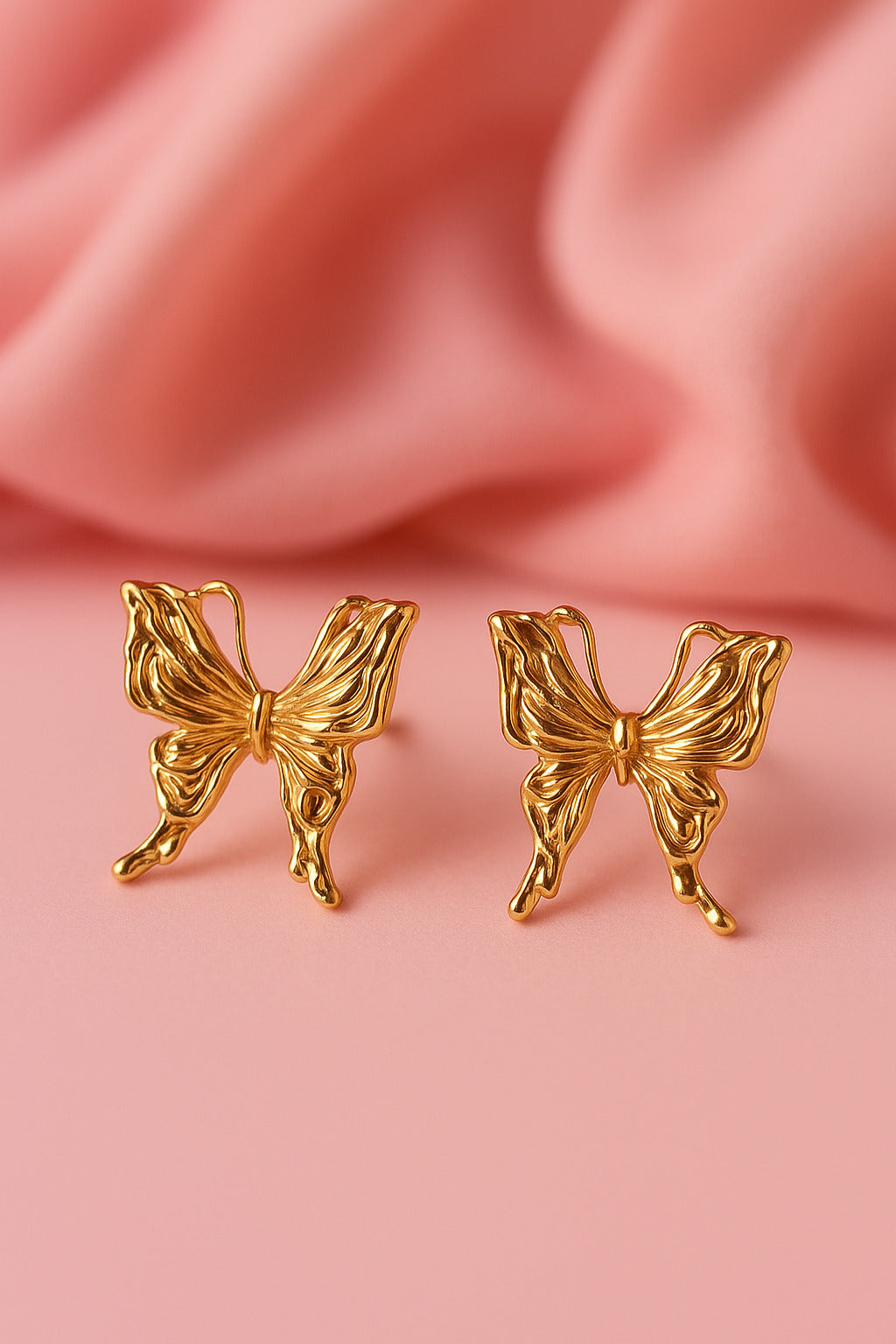 Stylish butterfly-shaped studs in a shiny golden finish. Perfect for festive wear, parties, or daily elegance. Lightweight & trendy.
