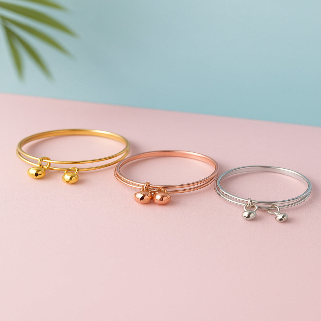 Stylish trio of sleek metallic bangles with minimal ball charm. Perfect for stacking or wearing solo for a classy everyday look.