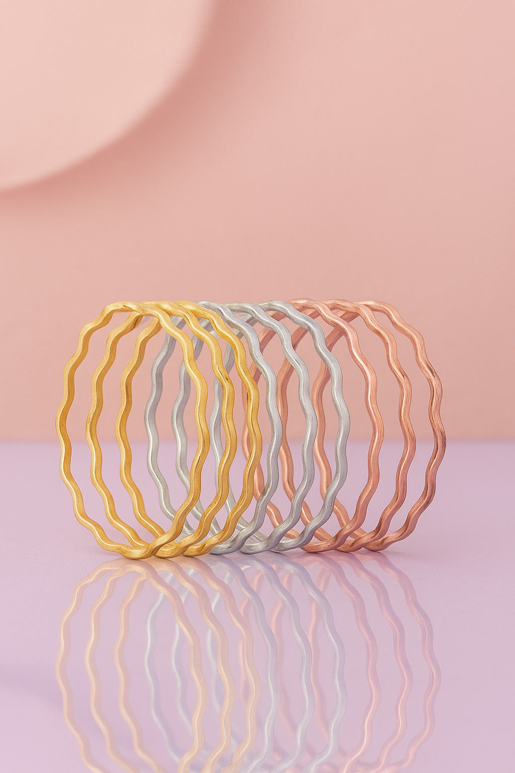 Set of 9 Wavy Metallic Bangles โ Gold, Silver & Rose Gold