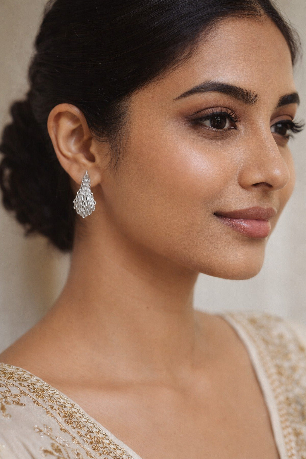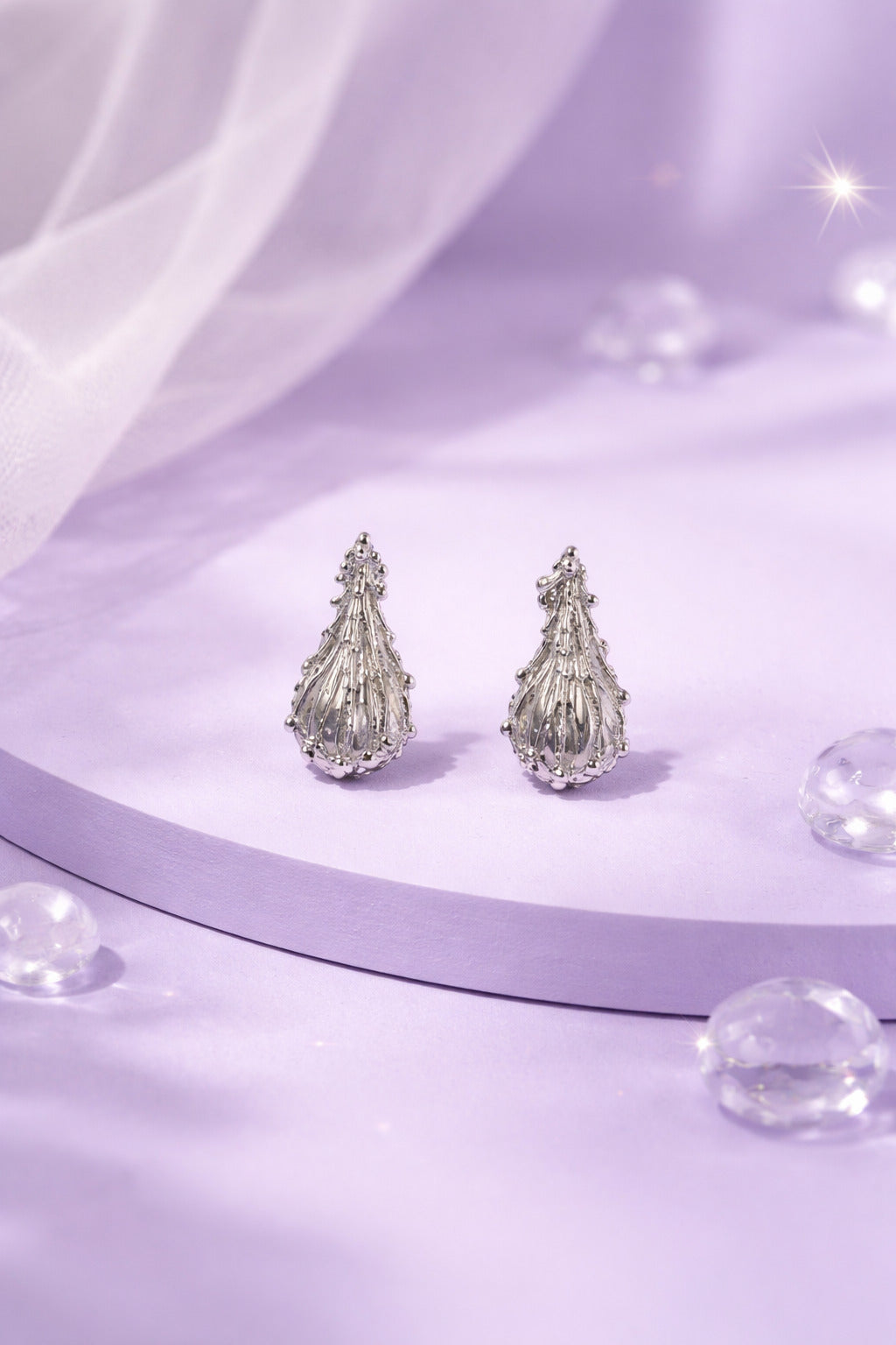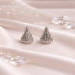 Elegant silver-tone stud earrings featuring a layered crystal cluster design. Lightweight, sparkling, and perfect for festive or evening wear.