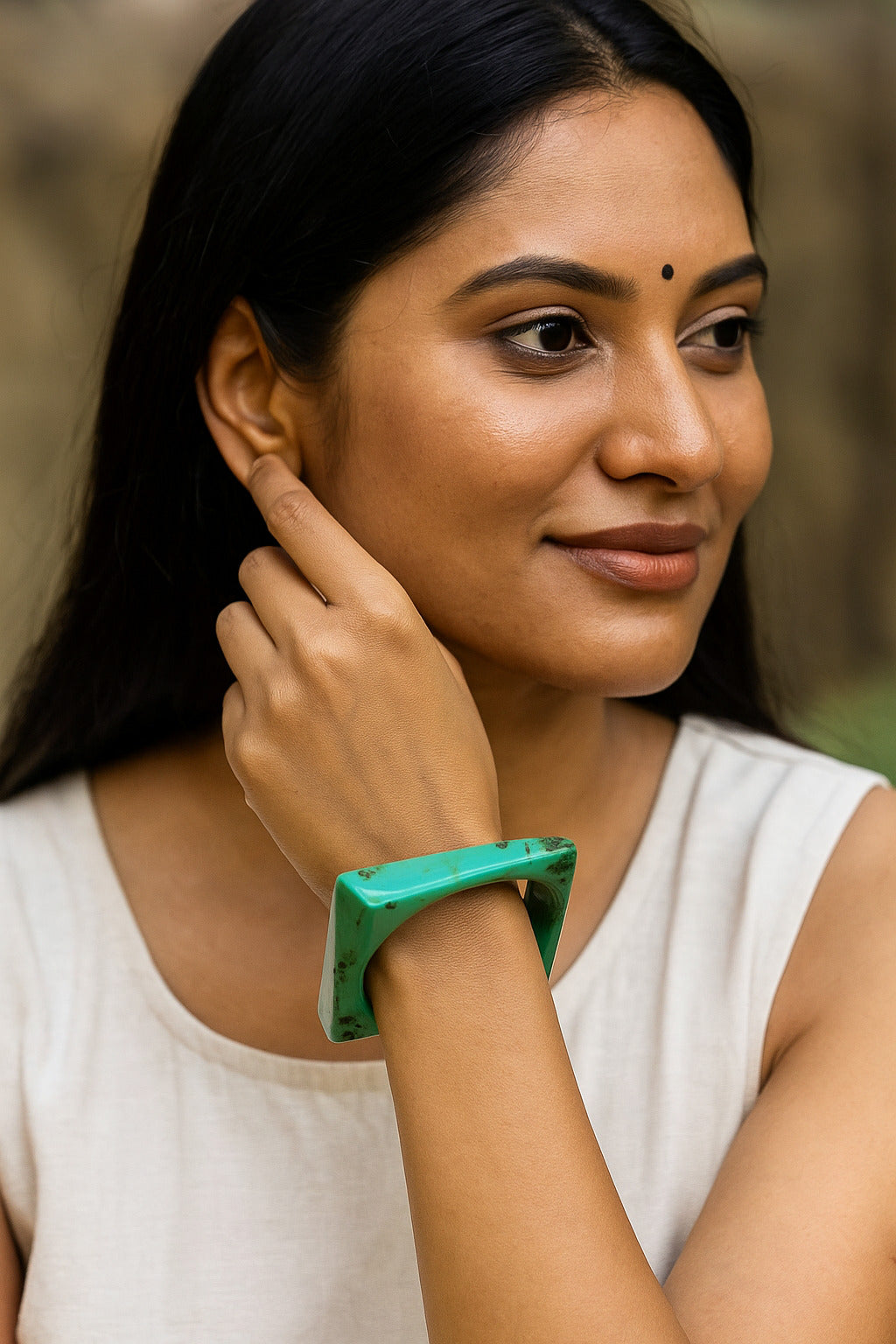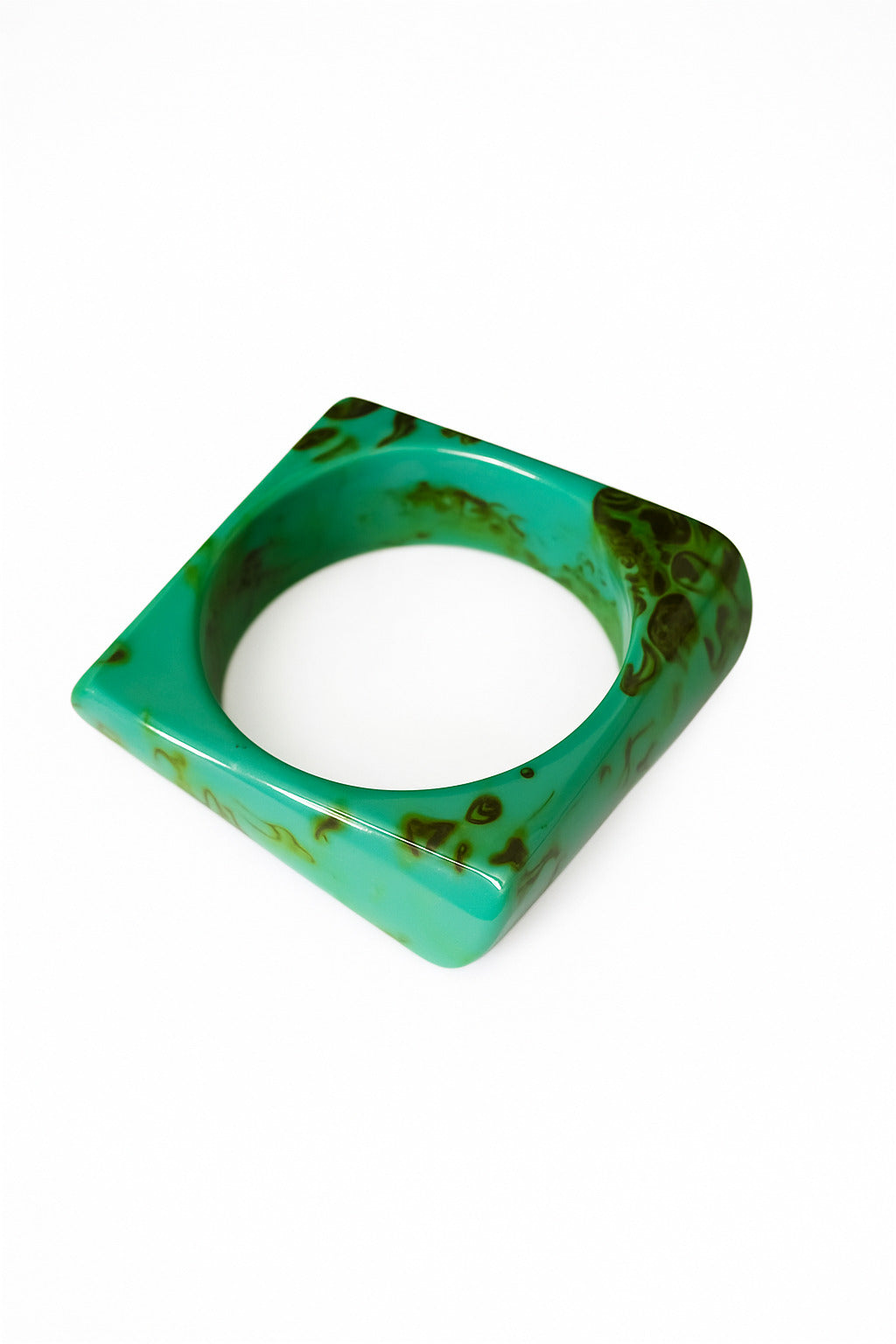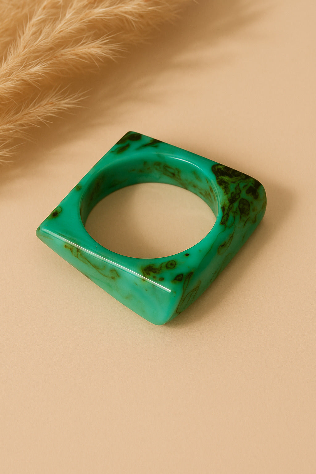 Bold and stylish square-shaped green bangle with a marble texture. Perfect to add a unique touch to your modern look.