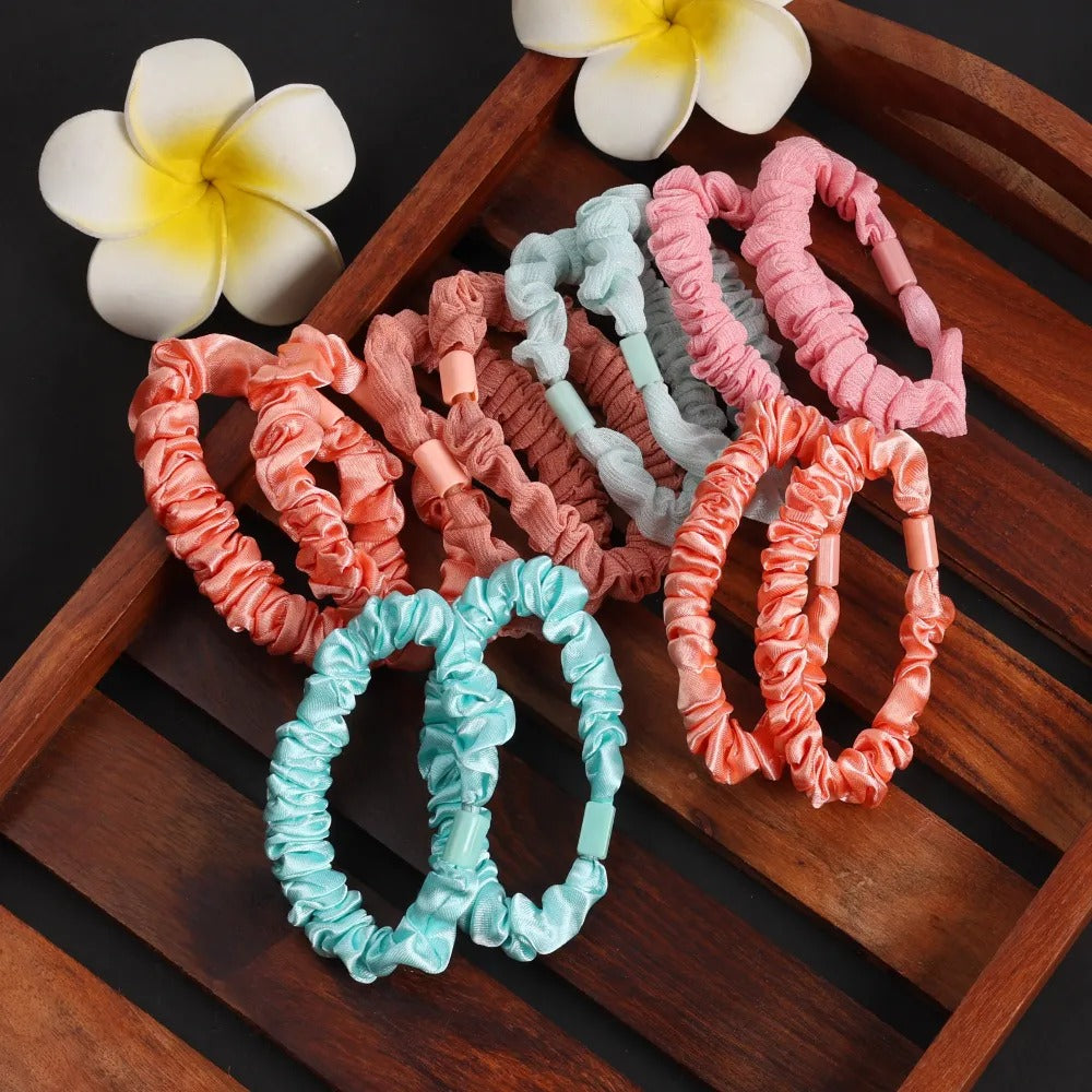 Add a touch of elegance and comfort to your hairstyle with Jewelz Silk and Chiffon Scrunchies. Designed for women and girls of all ages, this combo of 12 offers a variety of stylish and soft scrunchies that are perfect for everyday wear and special occasions.