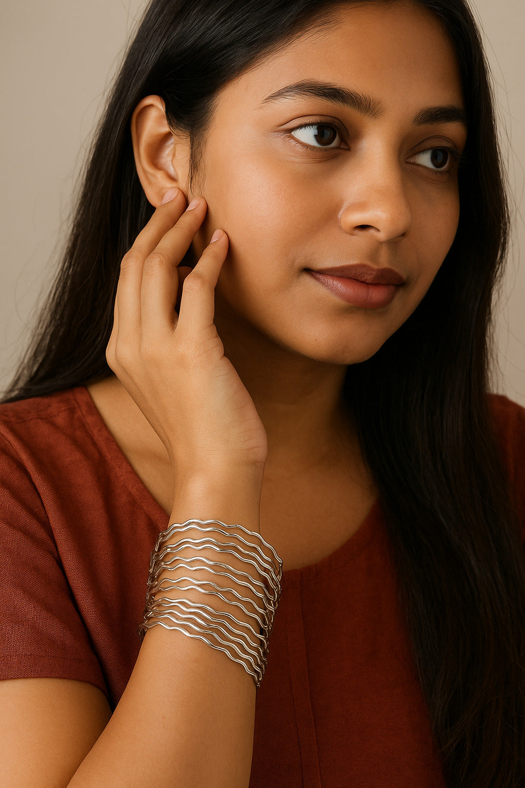 Women’s Silver Wavy Metal Bangles