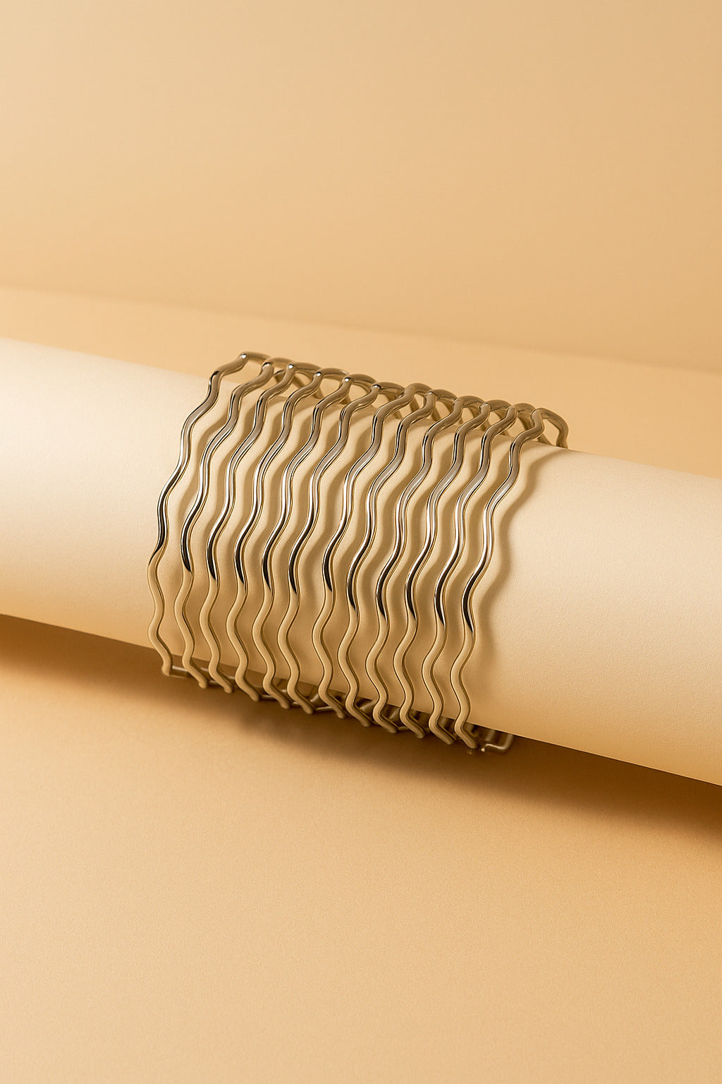 Set of 9 metallic wavy bangles in elegant silver tone. A modern accessory that blends simplicity with a unique design flair.