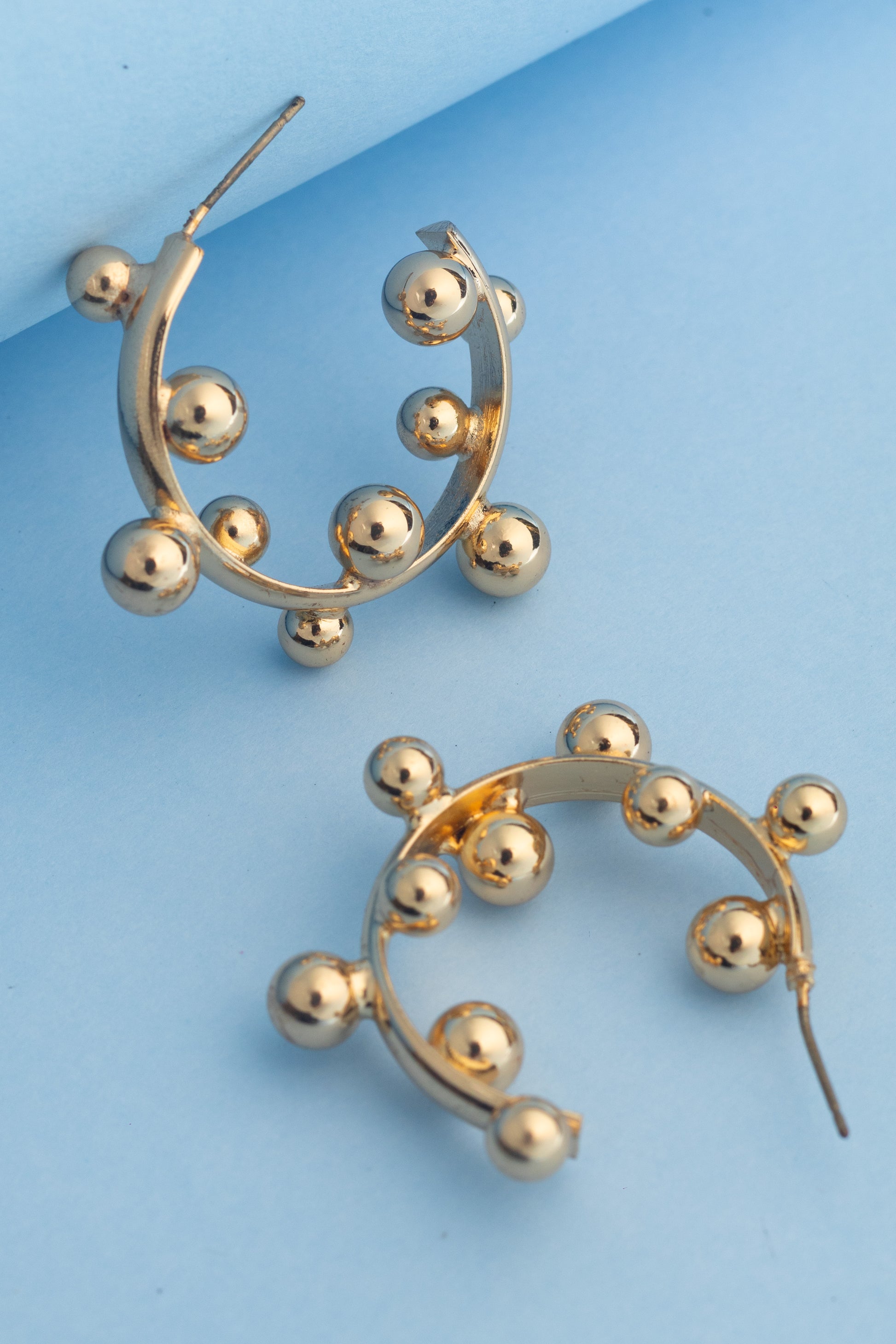 Turn up the shine with these statement gold hoops featuring a rich textured design. Lightweight yet bold, these earrings add instant glam to your ethnic or western outfits. A perfect pick for festive wear or party looks.