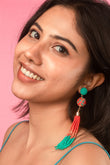 Festive tassel earrings with vibrant red and green beads, accented with golden details. Lightweight and eye-catching, perfect for weddings, parties, and traditional celebrations.