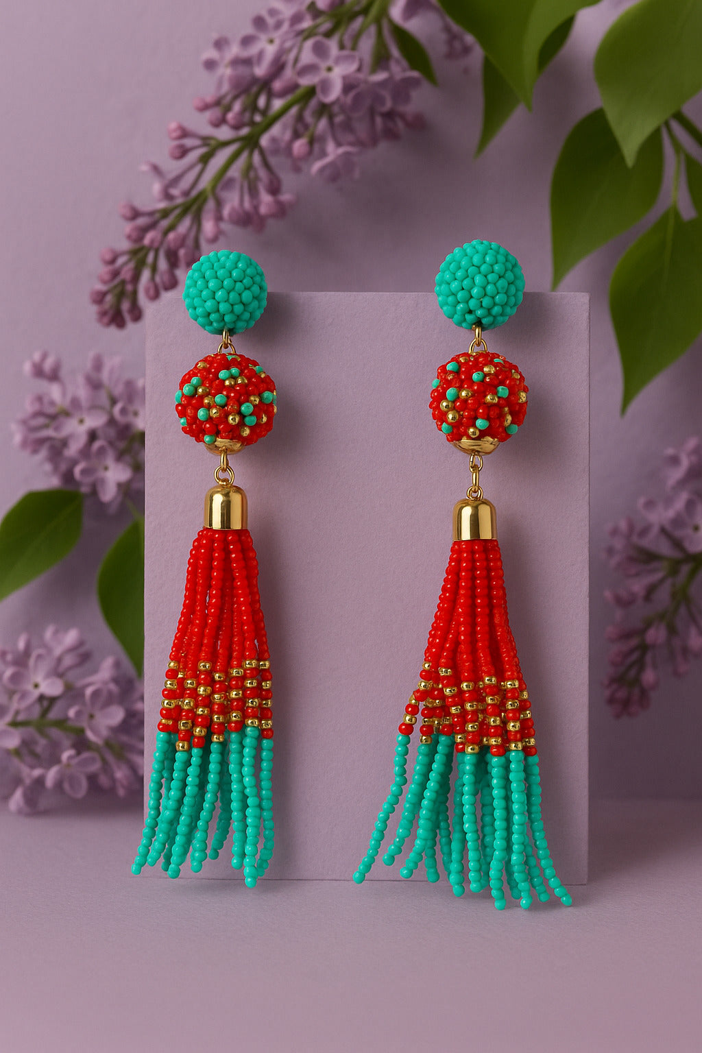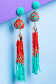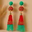 Red & Green Beaded Tassel Earrings