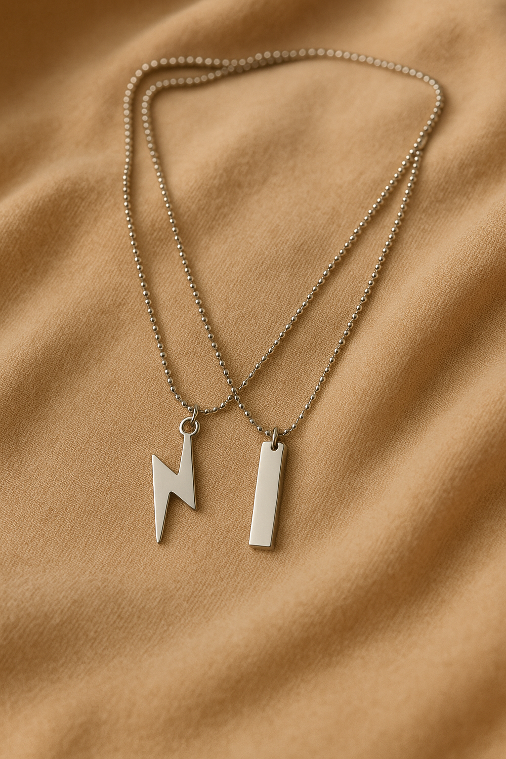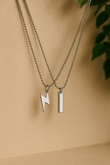 Set of 2 Silver Chain Necklaces with Lightning & Bar Pendants