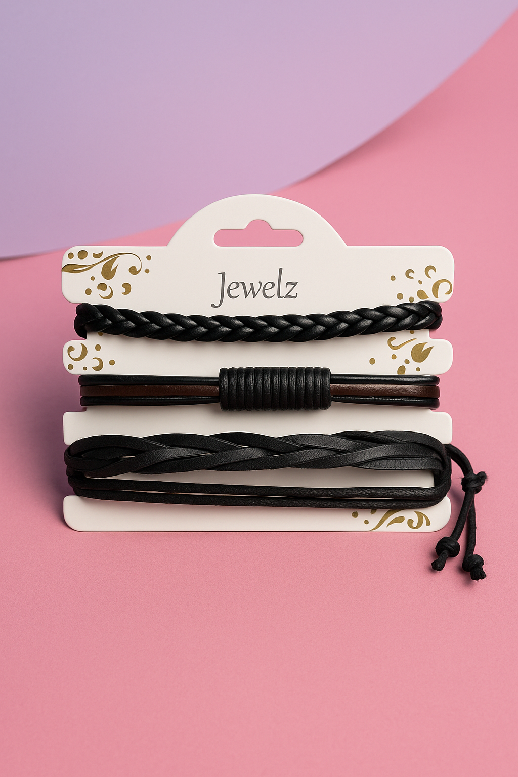 Trendy set of 3 bracelets featuring braided, knotted, and layered leather designs in black and brown tones. Perfect for casual wear, college, parties, or gifting.