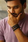 Set of 4 Black & Brown Leather Bracelets