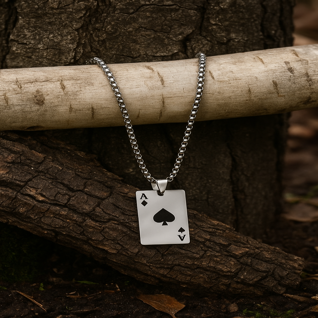 Trendy silver-tone chain necklace featuring an Ace of Spades pendant. A bold and stylish accessory perfect for casual wear, parties, or gifting to friends who love card games.