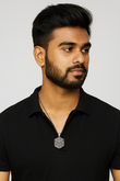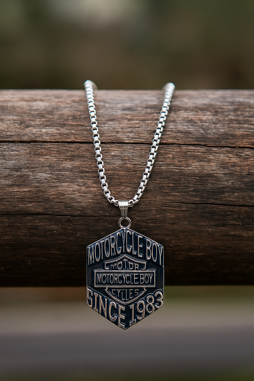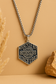 Trendy silver-tone chain necklace featuring an engraved statement pendant. A bold accessory perfect for casual outfits, parties, and street-style fashion, also great for gifting.