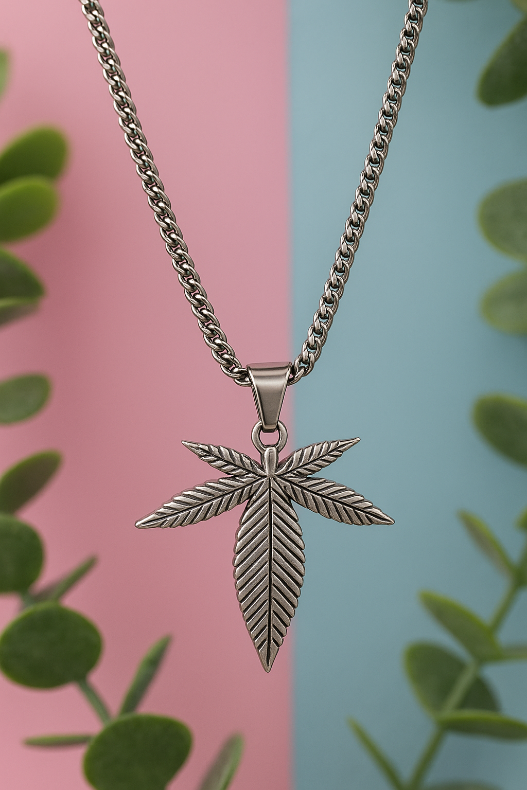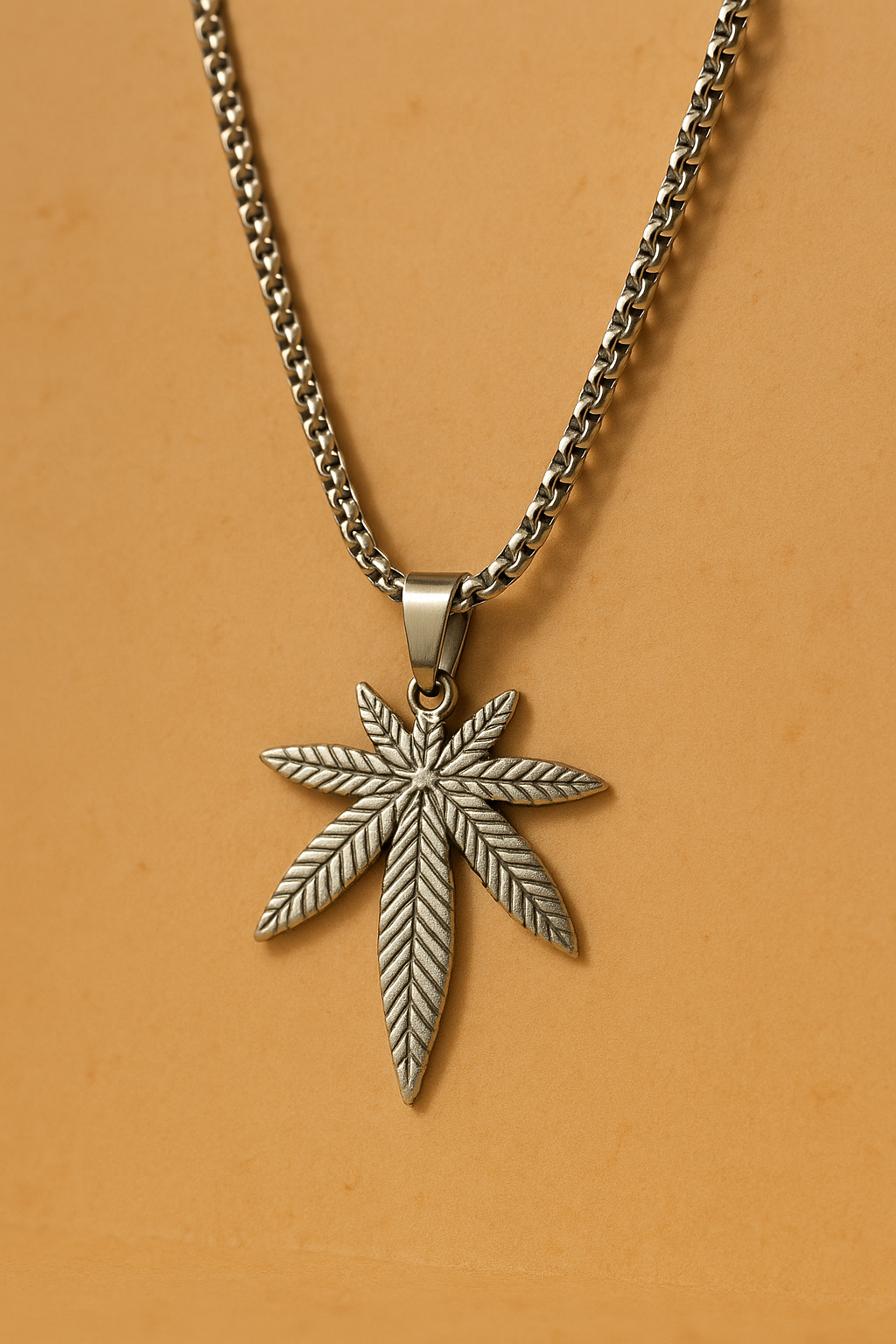 Trendy silver-tone chain necklace featuring a detailed leaf-shaped pendant. A stylish accessory perfect for casual wear, parties, or gifting to friends.