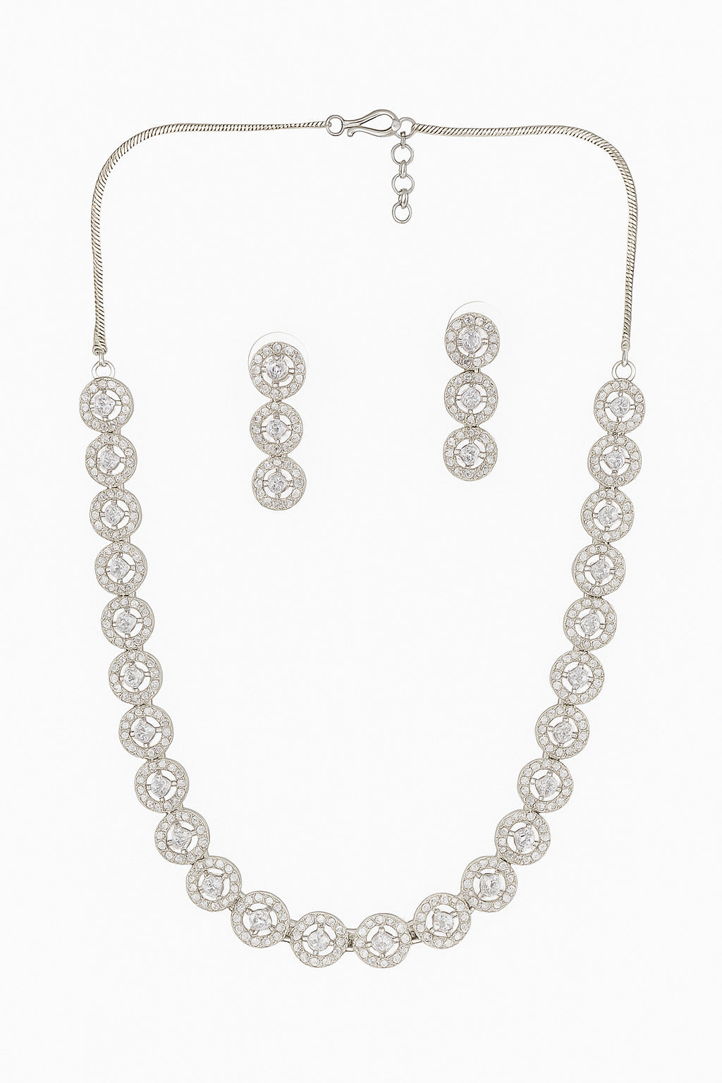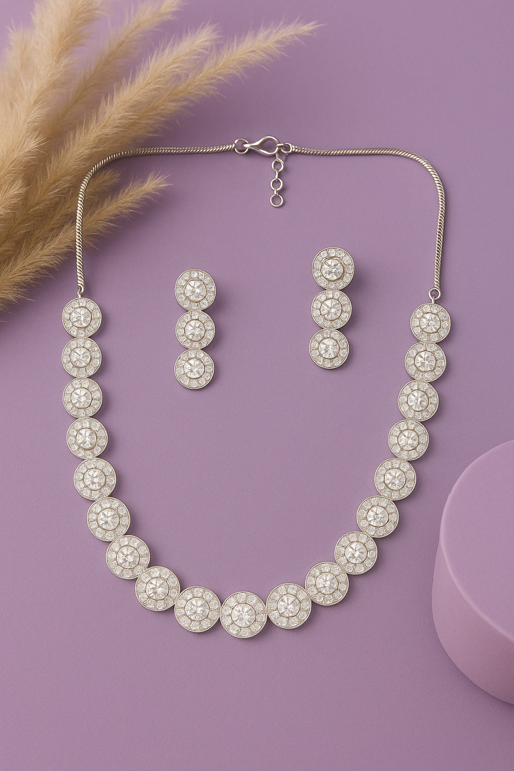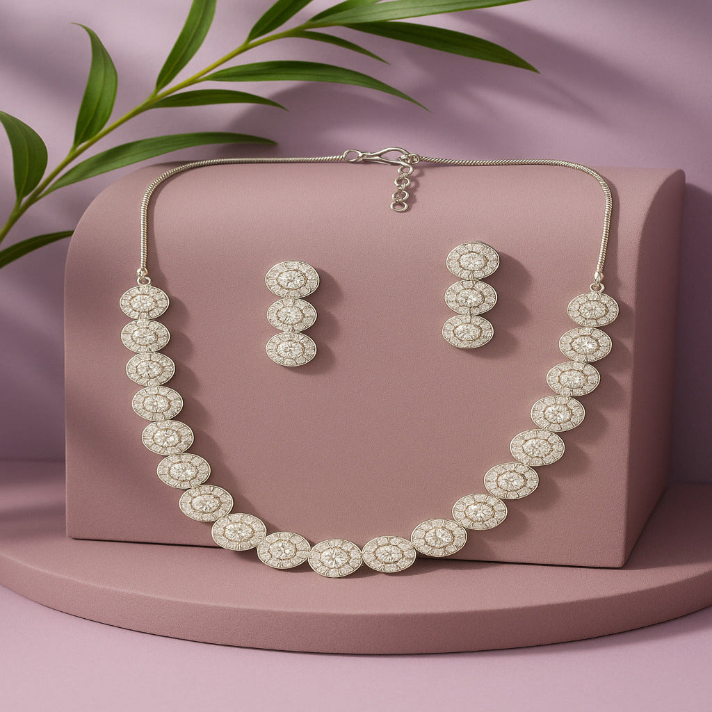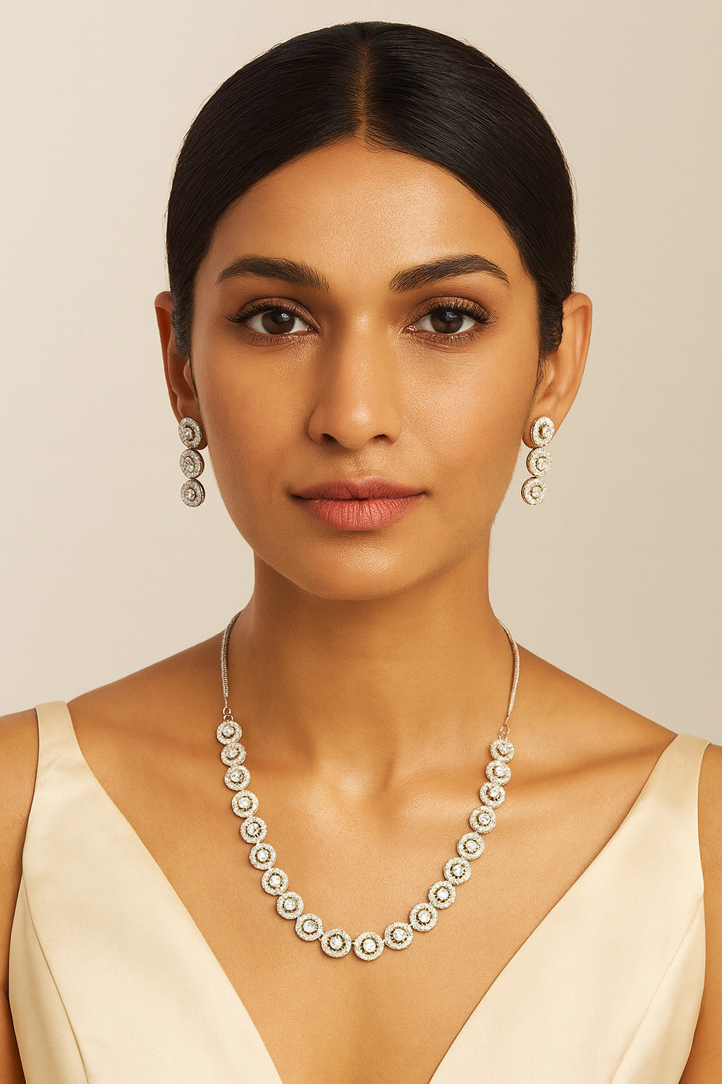 Silver Diamond Look Necklace & Earring Set for Women โ Elegant Party Jewellery